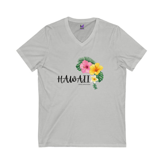 Hibiscus Harmony Unisex Jersey Short Sleeve V-Neck Tee